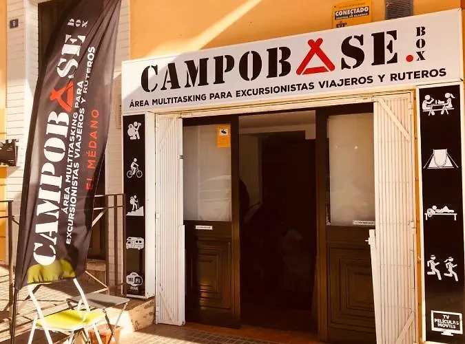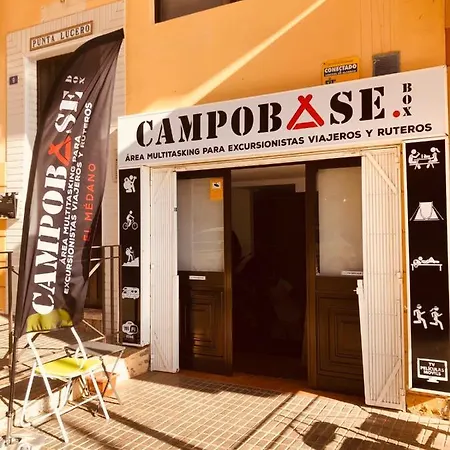 Auberge de jeunesse Campobase.Box est située à El Médano, à 5 minutes à pied de 30 Nudos Kite School. Certaines des chambres offrent des salles de bain communes, équipées d'une toilette séparée et une douche.